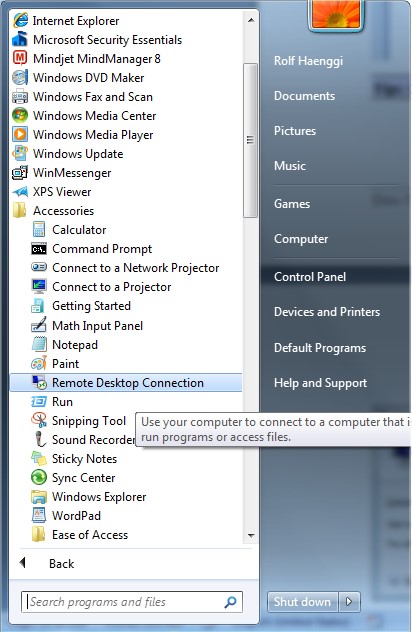 Tip: Considerable time can be saved if a link to Remote Desktop Connection is placed on the desktop