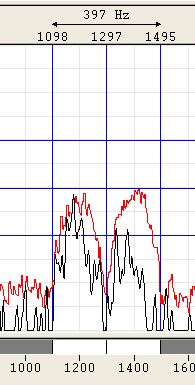 The bandwidth of the spectrum can be switched between 500 Hz, 1000 Hz, 4000 Hz and 24000 Hz. The upper and lower frequency boundaries of the signal are the selected with the right and left cursors. With the center cursor, the center frequency may be set more precisely. The precision of the center frequency is very important and directly influences the performance of the decoding.