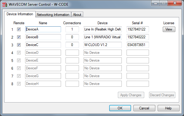 After restart of the server, the WAVECOM Server Control screen is displayed.